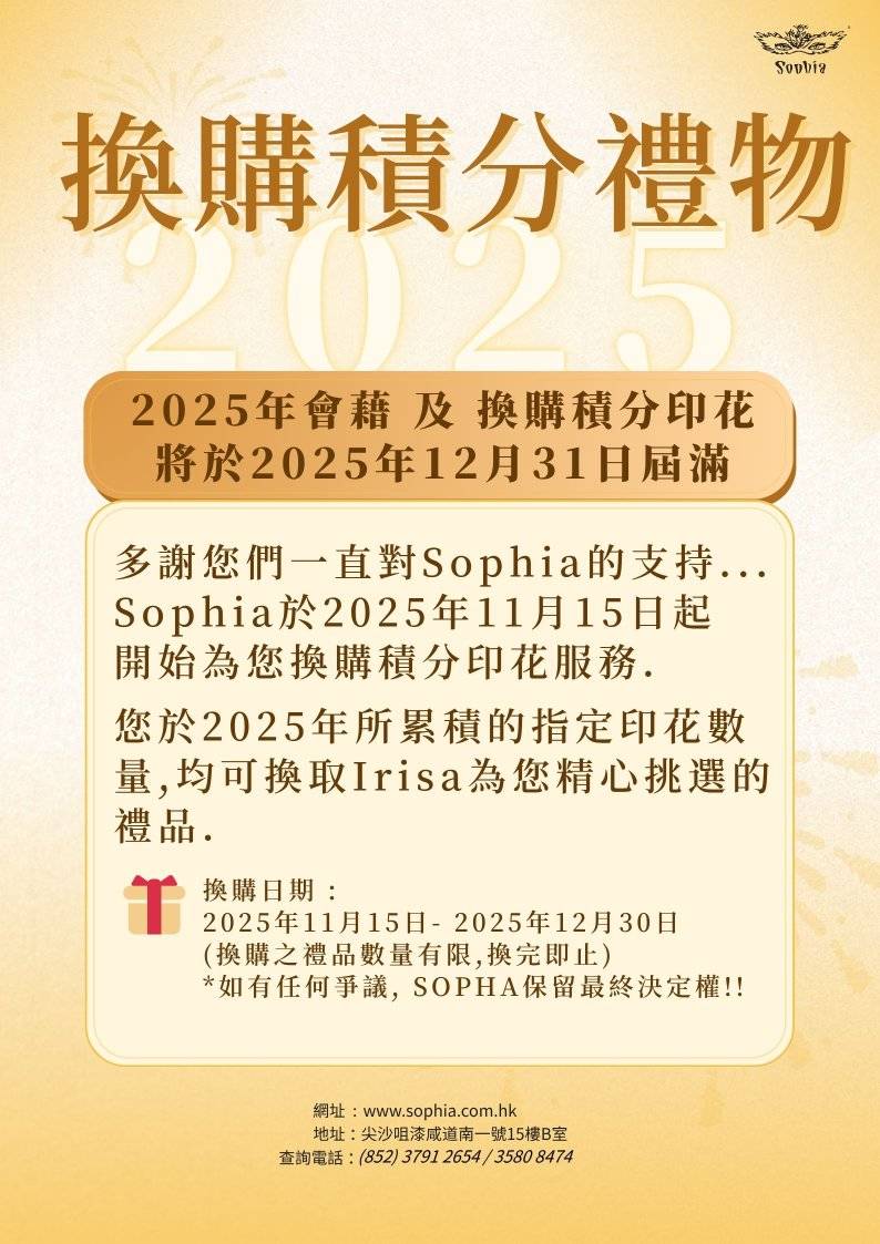 Sophia VIP2024積分換購 及 2025招募會員事宜 Sophia 11月15日水晶畫@療癒沙龍